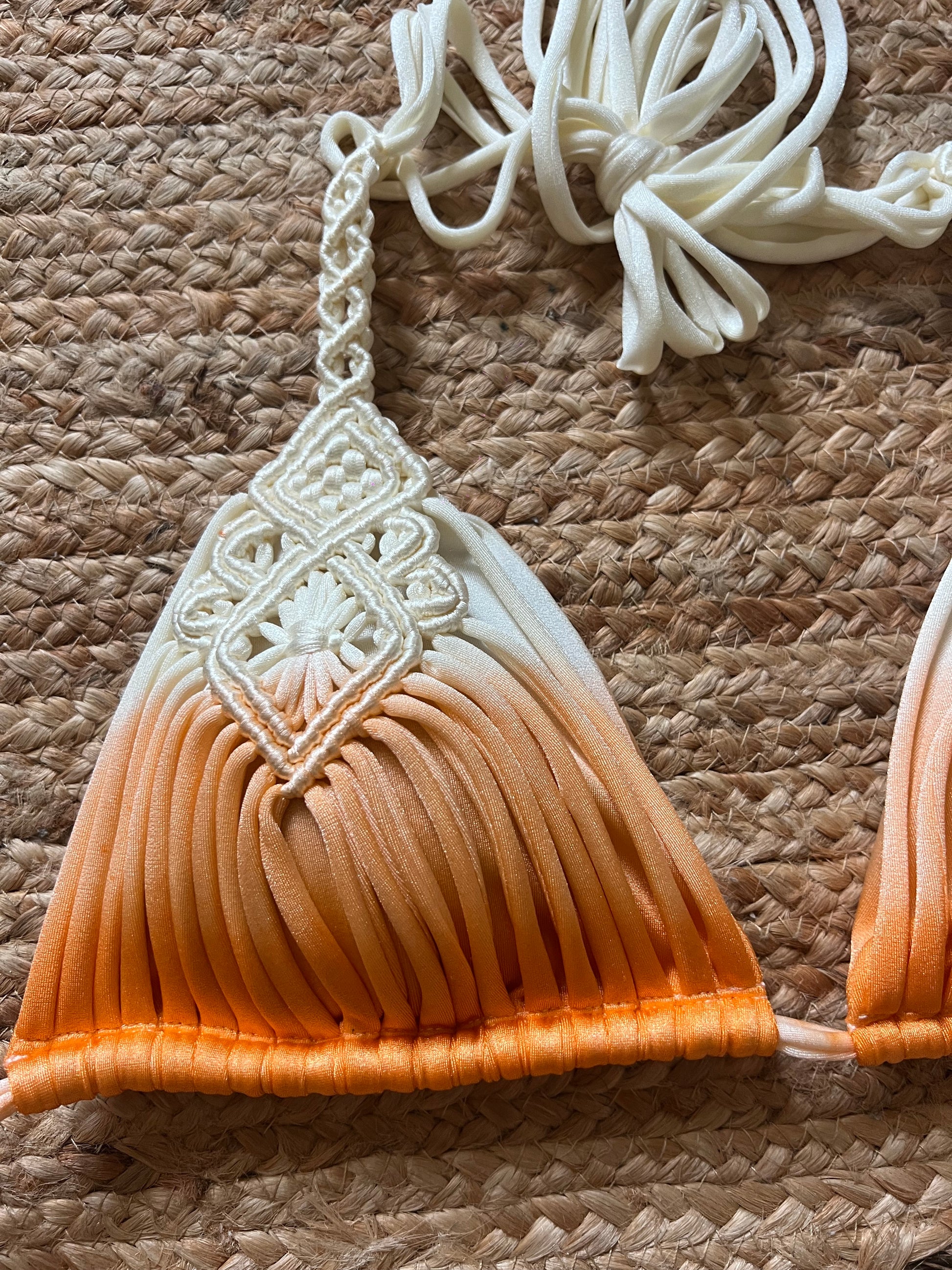 Meet the Sunrise Bikini, a luxurious essential crafted to make you feel confident from the very first light of day. Each piece is handmade with precision and hand-dyed to perfection, giving it a unique gradient inspired by warm sunrise tones — no two bikinis are ever the same.