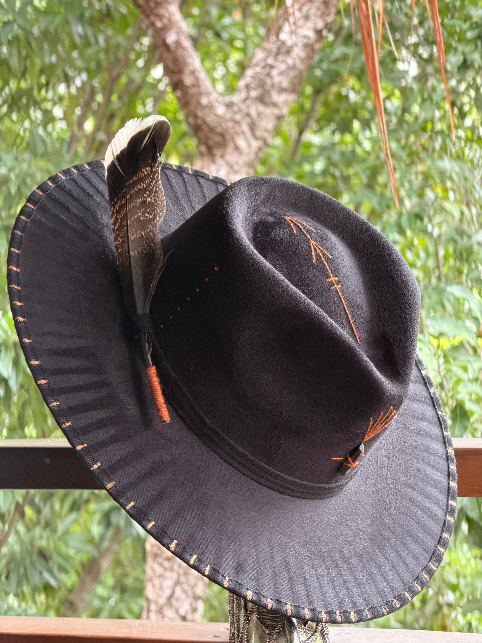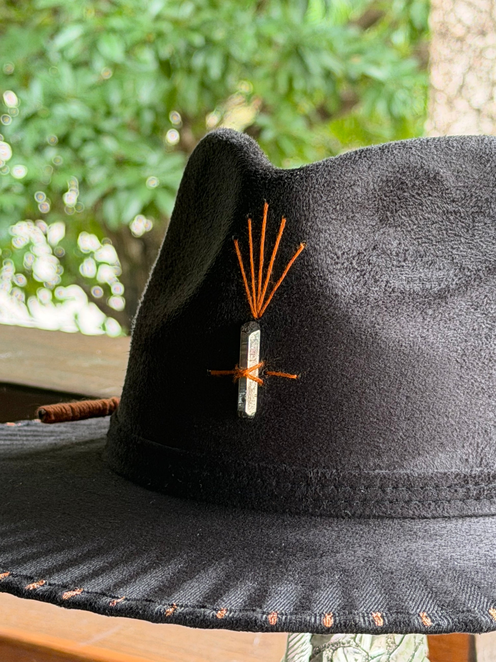 Created as a ceremonial object. The fire leaves its mark, the copper thread seals intention. A piece that honors the elements and the art of slow, conscious craftsmanship